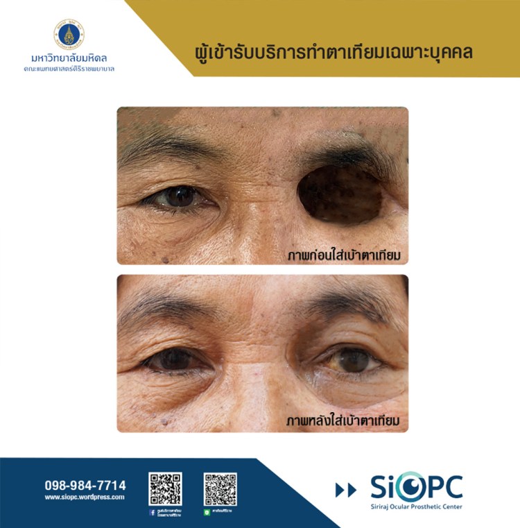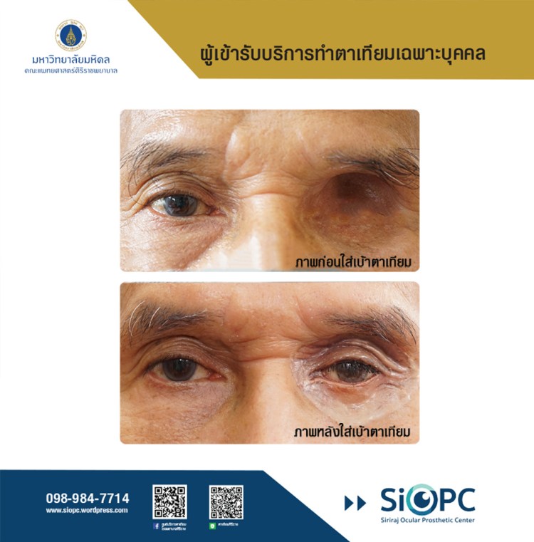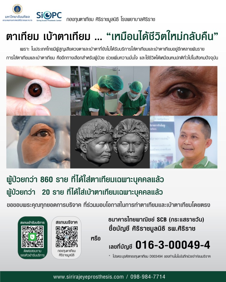 ศูนย์บริการตาเทียม รพ.ศิริราชมอบสิทธิทำตาเทียมเฉพาะบุคคล ภายใต้โครงการตาปลอม 300 ดวงตา 300 ดวงใจ เต็มจำนวนที่เปิดรับแล้ว เมื่อวันที่ 30 มีนาคม พ.ศ. 2565