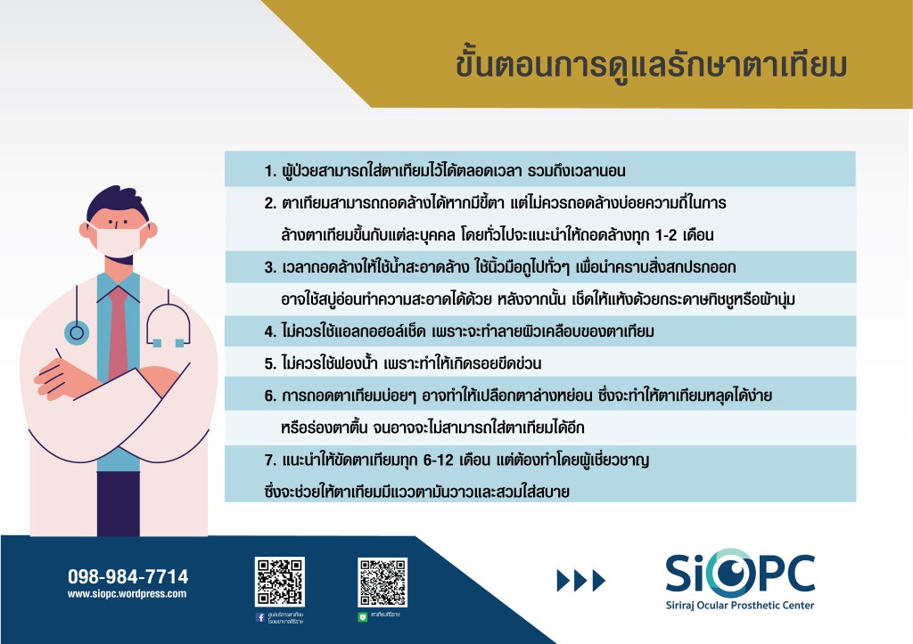 - แนะนำให้ขัดตาเทียมทุก 6-12 เดือน แต่ต้องทำโดยผู้เชี่ยวชาญ ซึ่งจะช่วยให้ตาเทียมมีแววตามันวาวและสวมใส่สบาย