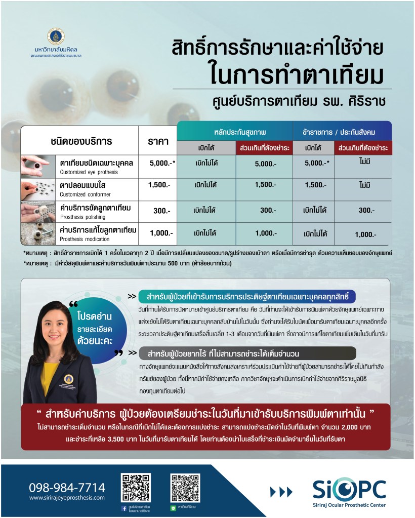 แนะนำสิทธิ์การรักษา ของศูนย์บริการตาเทียม รพ.ศิริราช