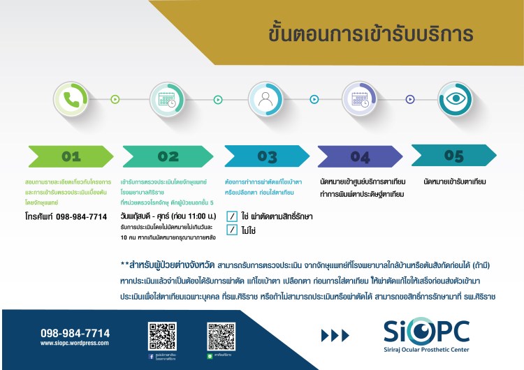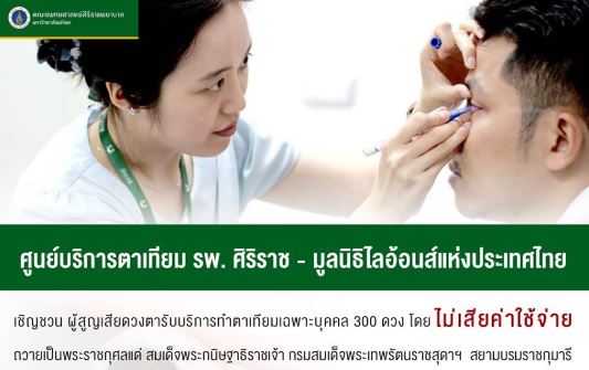 โดยศูนย์บริการตาเทียม รพ.ศิริราช ยังคงเปิดให้บริการทุกวันพุธ เวลา 11.00 – 16.00 น.